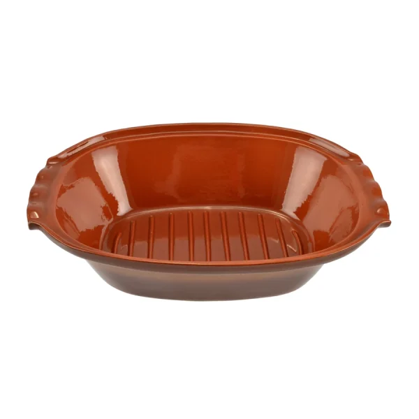 Priprava: Čeprav je posoda glazirana, je priporočljivo, da jo pred prvo uporabo namočite v hladni vodi za 30 minut. Pri naslednjem pečenju namakanje ni potrebno, saj glazura preprečuje vpijanje vode.