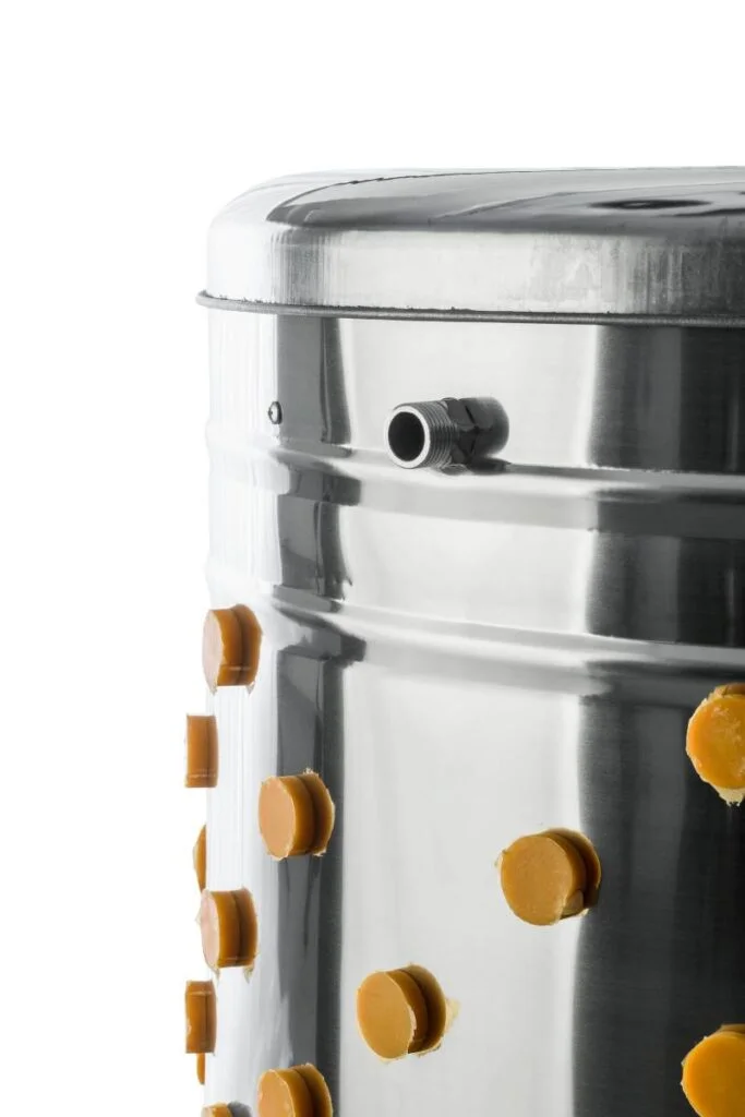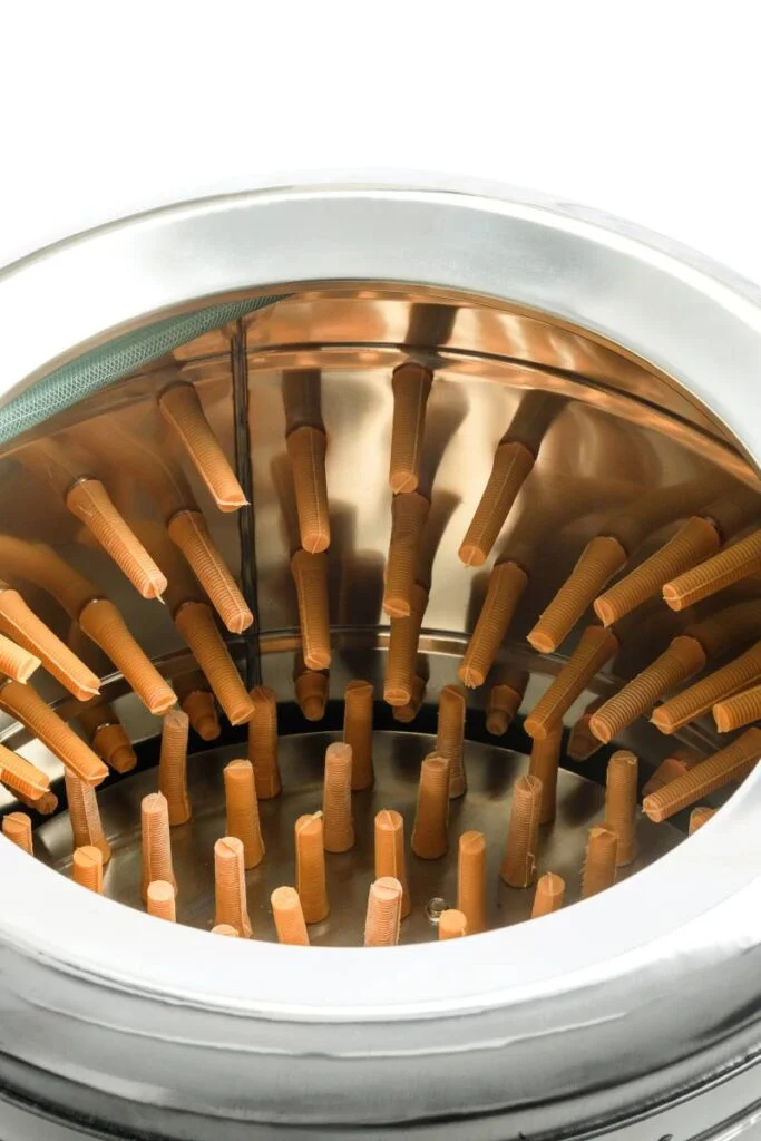Ta učinkovitost je rezultat močnega 1500 W motorja, ki zagotavlja zanesljivo in neprekinjeno delovanje. Srce stroja je boben s premerom 50 cm, opremljen s kar 128 visokokakovostnimi gumijastimi prsti. Ti prsti so strateško postavljeni za nežno, a temeljito odstranjevanje perja, kar preprečuje poškodbe občutljive kože perutnine.